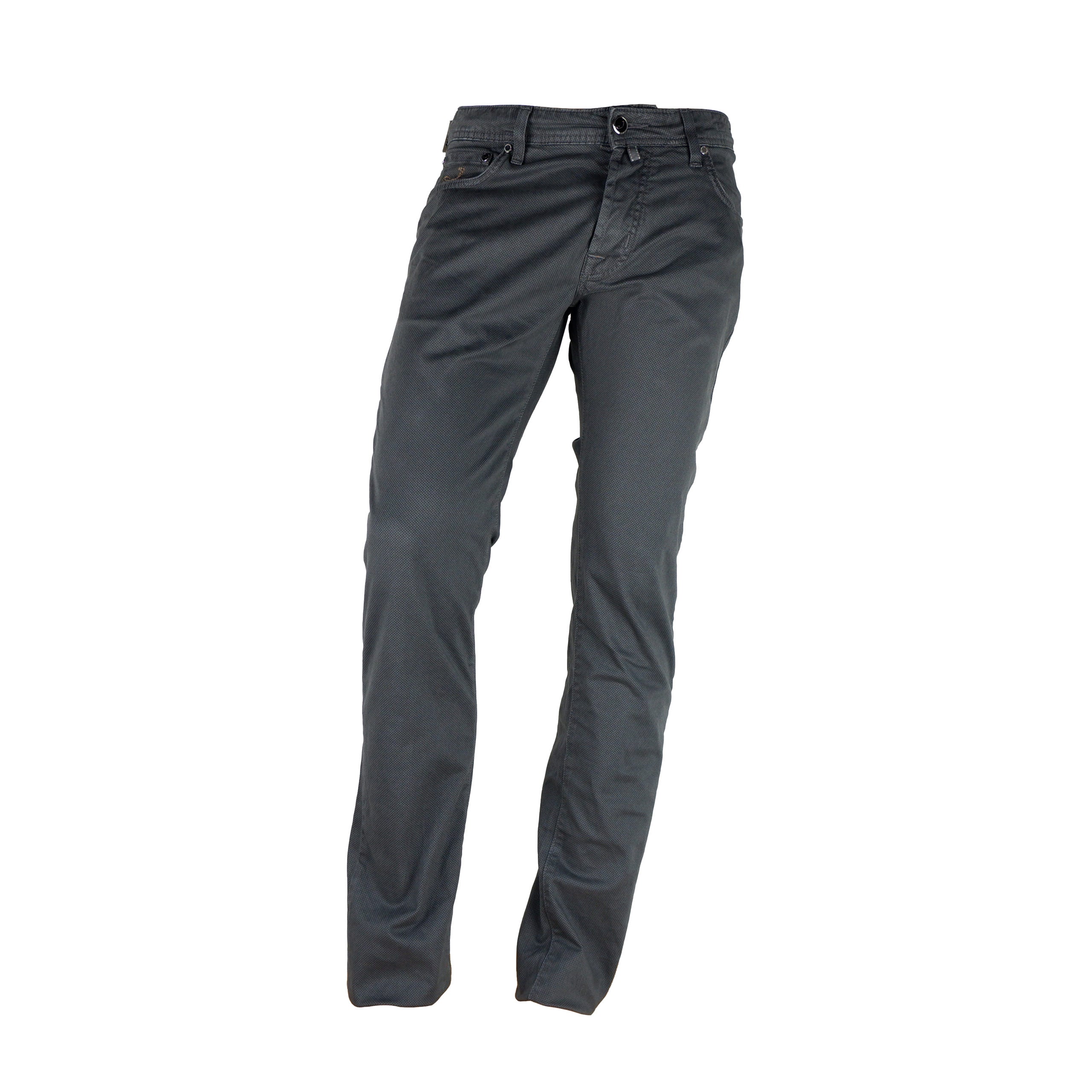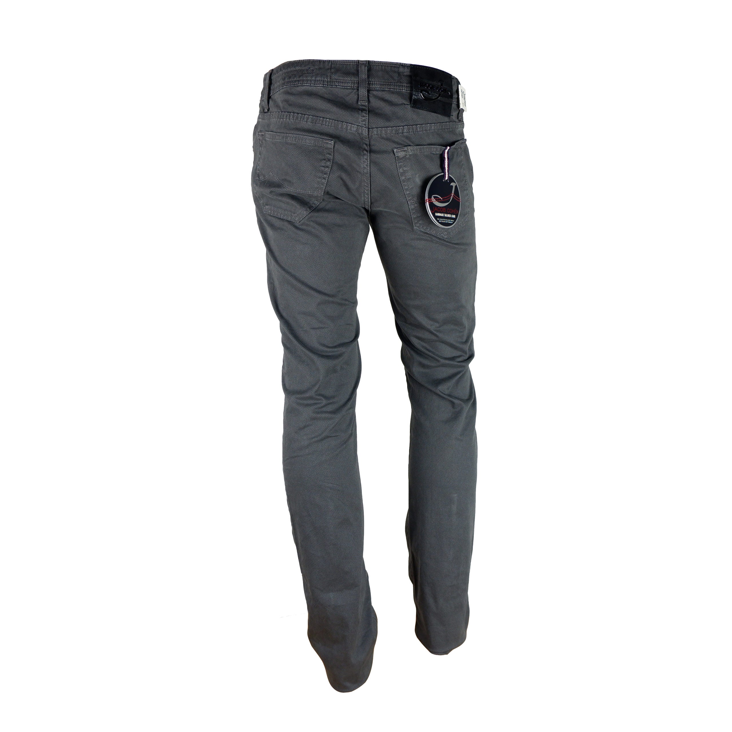 Jacob Cohen trousers, 5-pocket model, anthracite color, regular fit, with black suede leather patch. Made in Italy
