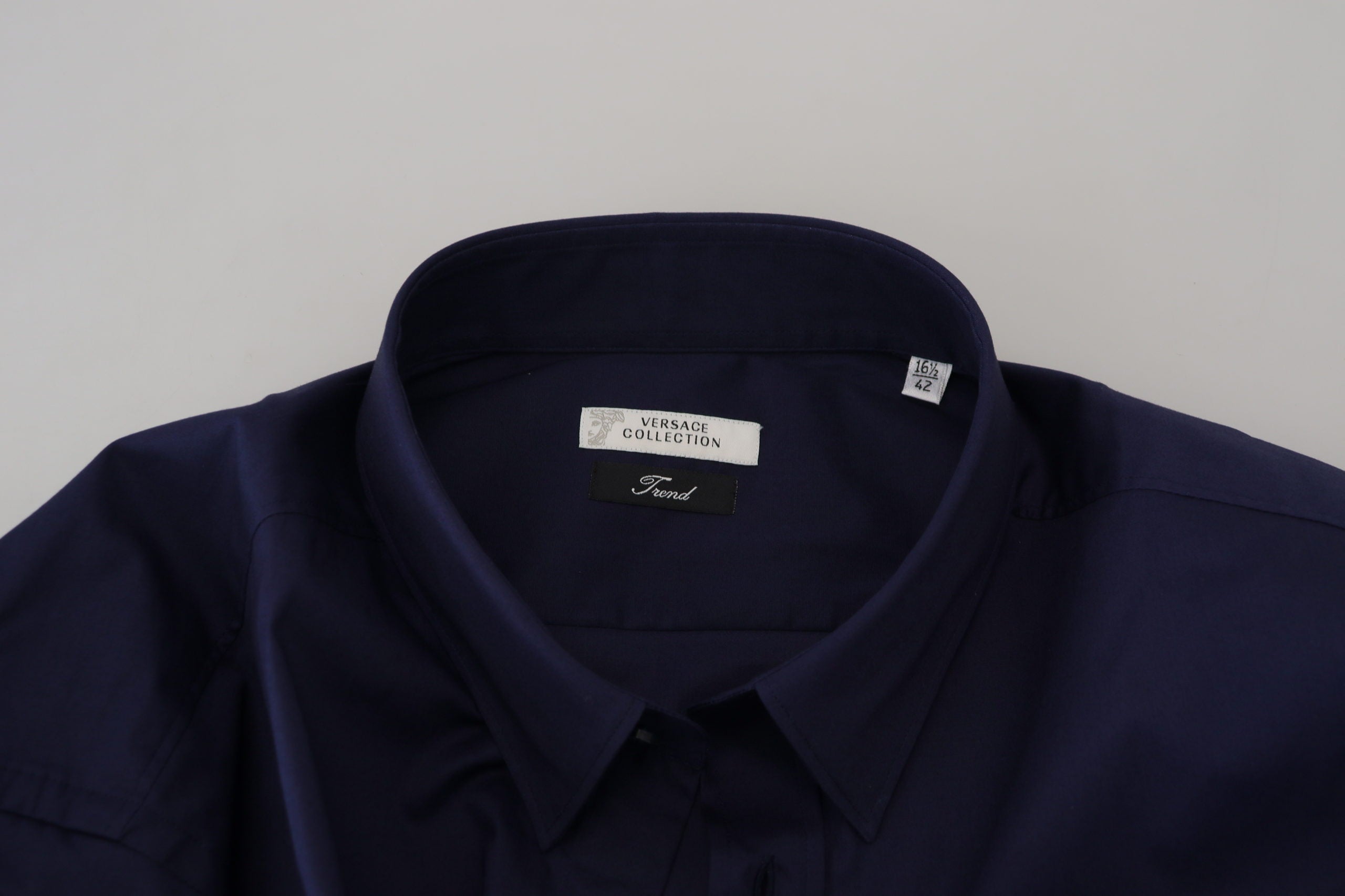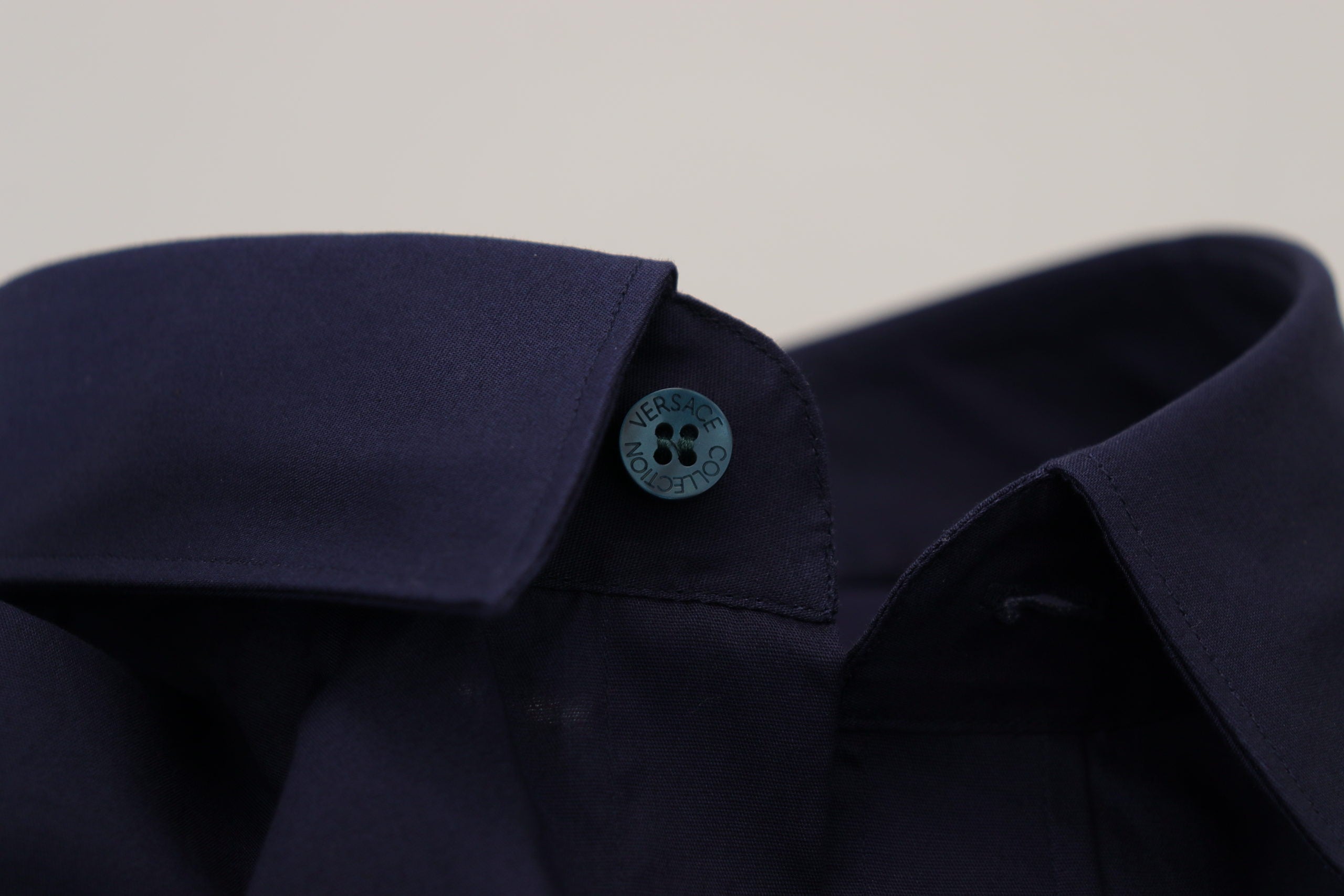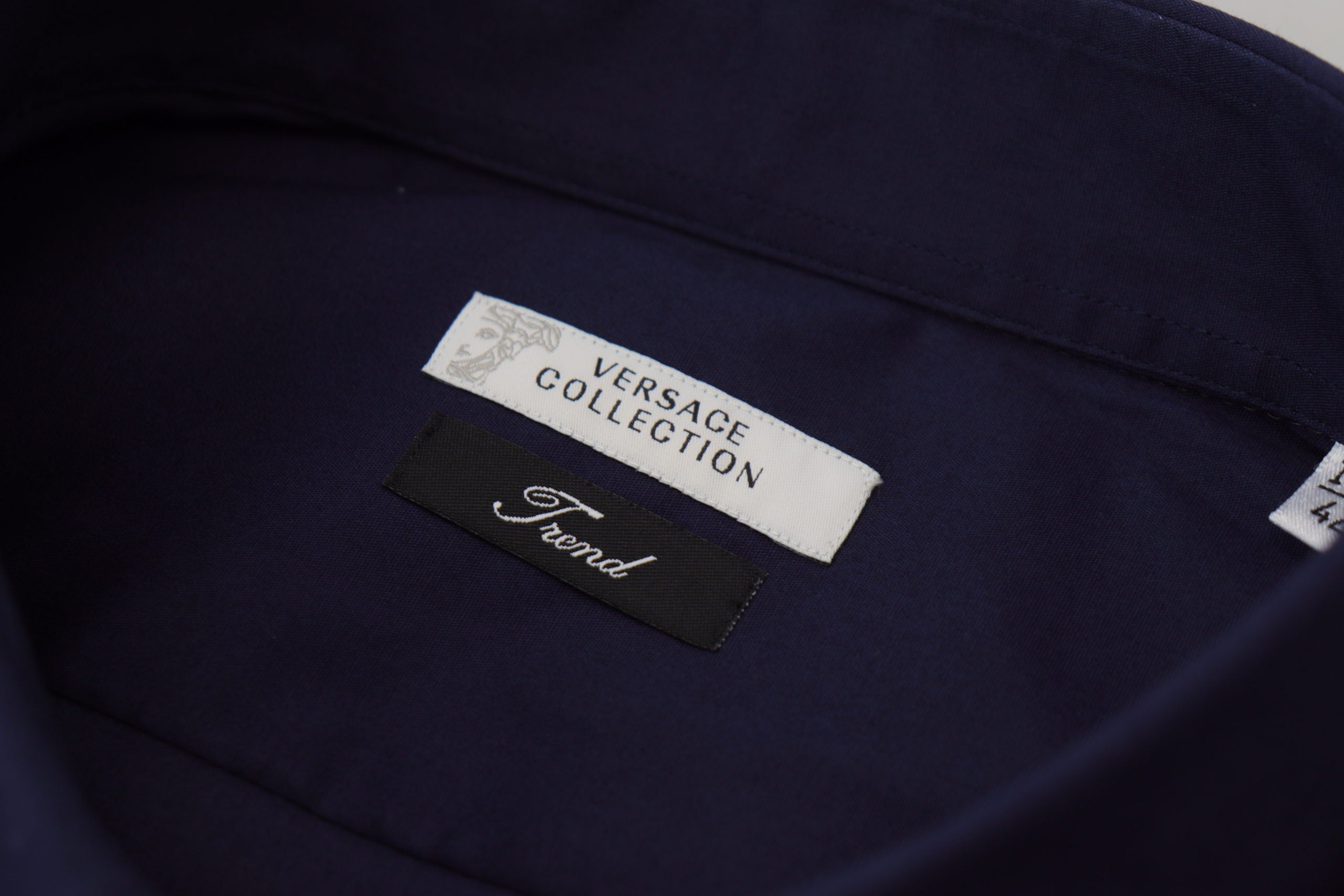 Versace Collection Dark Blue Cotton Formal Dress Trend Shirt Gå til indhold